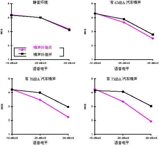 圖3 在噪聲補(bǔ)償功能上的MOS測(cè)試顯示出用戶感覺到話音質(zhì)量變化的明顯增加;