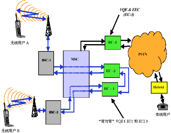 使消費(fèi)者滿意并不斷擴(kuò)大用戶基數(shù),抱著這一目的,很多無線服務(wù)提供商求助于補(bǔ)救措施,對2G的缺點(diǎn)進(jìn)行補(bǔ)償。與此同時,數(shù)字無線語音與PSTN(公共交換電話網(wǎng))的連接要求用到電回聲抑制器(EEC),基于這一事實(shí),人們將VQE