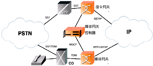 IP電話技術(shù)把話音、傳真數(shù)據(jù)和IP網(wǎng)絡(luò)無縫地集合到了一起。因特網(wǎng)工程任務(wù)組(IETF)已經(jīng)建議了一個(gè)功能模型,來橋接包交換的IP網(wǎng)和電路交換的PSTN,這些橋接設(shè)備就是:信令網(wǎng)關(guān)(SG)、媒體網(wǎng)關(guān)(MG)、和媒體網(wǎng)關(guān)控制器(MGC)。(請(qǐng)參看圖1)。MGC通常又被叫做軟交換,正如它的名字表達(dá)的意思一樣,MGC控制著媒體從電路交換領(lǐng)域經(jīng)過媒體網(wǎng)關(guān)的網(wǎng)絡(luò)傳送到基于包的領(lǐng)域。呼叫控制消息首先送達(dá)SS7信令網(wǎng)關(guān),轉(zhuǎn)換成網(wǎng)關(guān)網(wǎng)絡(luò)中的MGCP(媒體網(wǎng)關(guān)控制協(xié)議)來控制媒體流,完成呼叫的控制、接續(xù)。話音、傳真和圖象介質(zhì)都是從PSTN交換網(wǎng)通過這些新一代的媒體網(wǎng)關(guān)連接到IP網(wǎng)的。