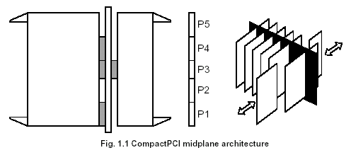 CompactPCI是中間背板結構,即有多個卡插在機箱前部和后部的結構。該體系結構的背板位于前向插卡和后向插卡之間,提供機箱中所有插槽間的總線連接和同一機箱中前向和后向插卡之間的連接。所有的插卡通過指定的從P1到P5插槽連接到背板。這些插槽的功能在CompactPCI