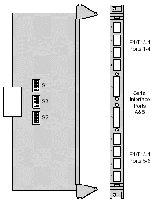 轉換背板卡用于E1/T1/J1中繼線或者V.11端口的物理連接。它也有針對E1/T1接口的絕緣體和保護組件和針對V.11端口的驅動器。
