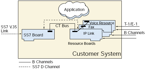 - 其它 T-1/E-1 通道被語音板卡管理,可通過CTbus路由到七號信令板卡