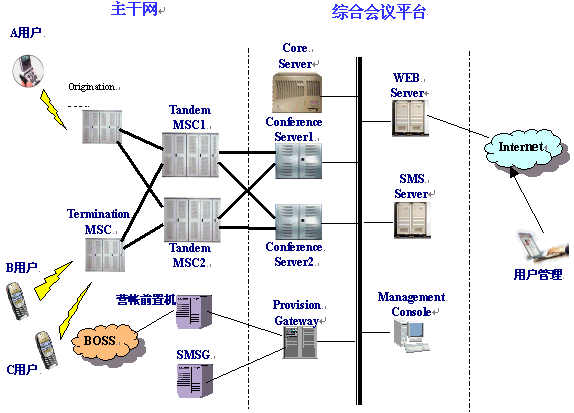 概述 。。今年來,隨著電話會議技術(shù)的不斷成熟,基于計算機平臺的會議型業(yè)務(wù)應(yīng)用越來越活躍,其中電話會議系統(tǒng)、QQ聊天系統(tǒng)以及BGM便是主要熱門應(yīng)用。 。。交互式電話會議系統(tǒng)是一個真正由用戶自己管理的智能型交互式電話會議系統(tǒng),是目前國際上流行的一種召開會議的新形式。客戶利用它可以隨時隨地召開本市、國內(nèi)或國際的電話會議,人們無論身在何處,只需撥打一個事先約定的電話會議號碼和密碼,即可參加會議,并且能自由組會,同時發(fā)言,自由交談?梢酝瑫r招開數(shù)十方,適用于商務(wù)研討、緊急討論會、信息匯總會、親友聚會等各種各樣的會議。