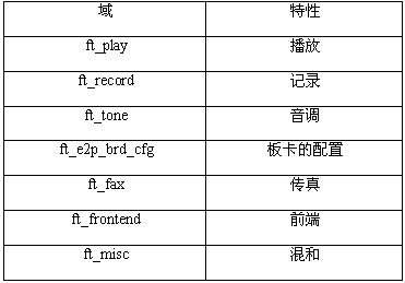 語音API函數(shù)。在語音API的頭文件dxxxlib.h中定義了用FEATURE_TABLE數(shù)據(jù)結(jié)構(gòu)中的某個(gè)參數(shù)代表的特性。FEATURE_TABLE結(jié)構(gòu)中的ft_tone字段包括一個(gè)位掩碼,它指出了一個(gè)特定的語音設(shè)備支持的音調(diào)特性。