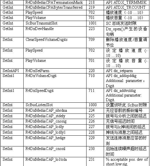 必須注意,調(diào)用API級(jí)的函數(shù)設(shè)置一個(gè)CTADE_A參數(shù)可能不只改變電路板級(jí)的參數(shù)。例如,R4DxMedia中,使用函數(shù)MediaSetBool設(shè)置REGID_R4DxMediaDisableAllToneDetection(280)為0或1來清除Dialogic提示音ID。
