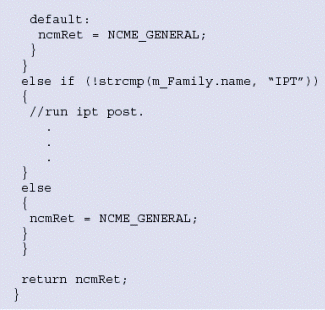 。。當系統(tǒng)檢測到一個外圍設備板卡時,建議您在該設備上執(zhí)行POST以保證硬件功能良好。系統(tǒng)版提供了POST工具,可以基于硬件類型和它屬于的產(chǎn)品系列被單獨執(zhí)行。圖6例證了這個功能是如何完成的。代碼snippet是系統(tǒng)版應用實例pfmanager的一部分。