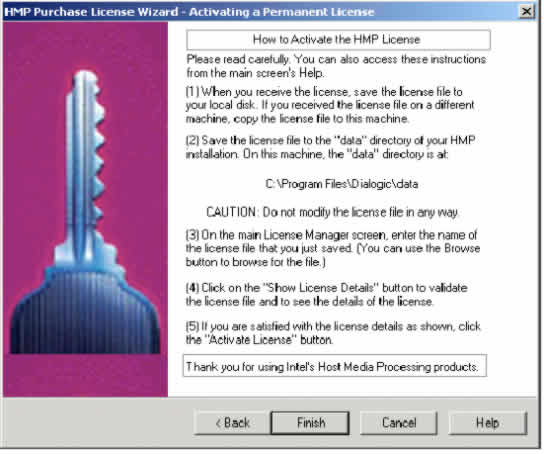 程序> Dialogic NetStructure HMP 1.0 > HMP許可證管理器:參見第4章"主機(jī)媒體處理軟件的許可證程序"。